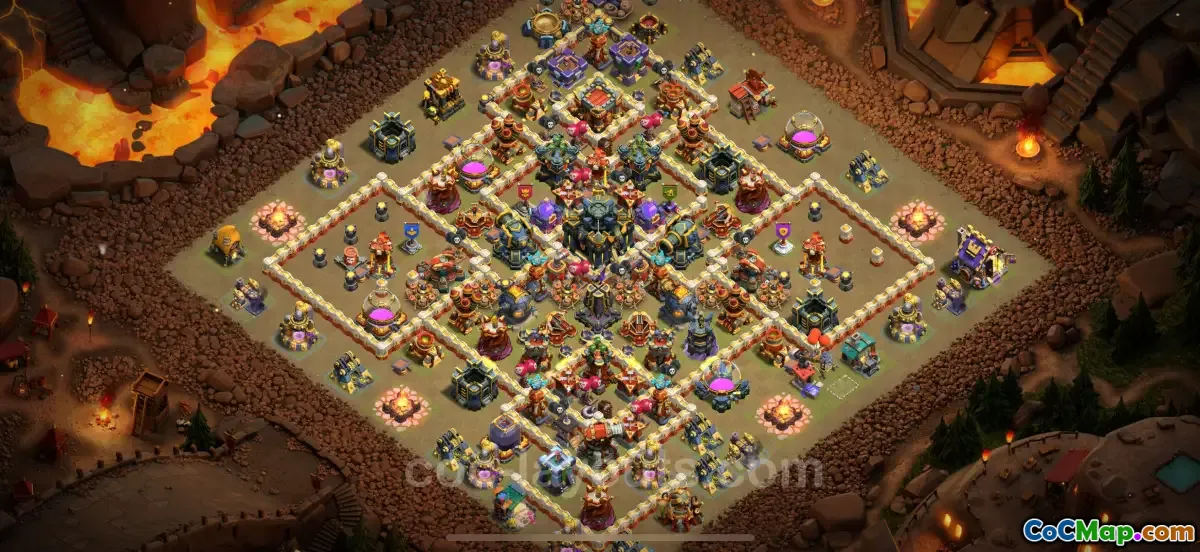 The Best Anti 2 Stars War Base for Town Hall Level 17 is designed specifically to counter strategies that involve Electro Dragons and air attacks. With the rise of these powerful units in Clash of Clans, developing a robust defense to thwart their effectiveness is essential. This base layout is optimized to minimize the chances of opponents securing two stars during Clan War Leagues (CWL), showcasing clever design that focuses on trapping and hindering common attack patterns seen at this level.