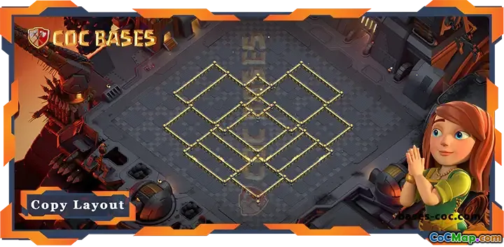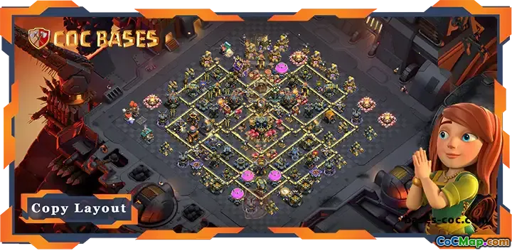 The layout features centralized Town Hall, well-protected resource storages, and layered defenses to ensure maximum coverage. It’s designed to counter popular attack strategies, including Queen Walks, Sandstorms, and Funnel Attacks. For optimal performance, use the supporting link to implement this effective and balanced defense setup, ensuring your clan’s success in war battles and maintaining your dominance on the leaderboards.