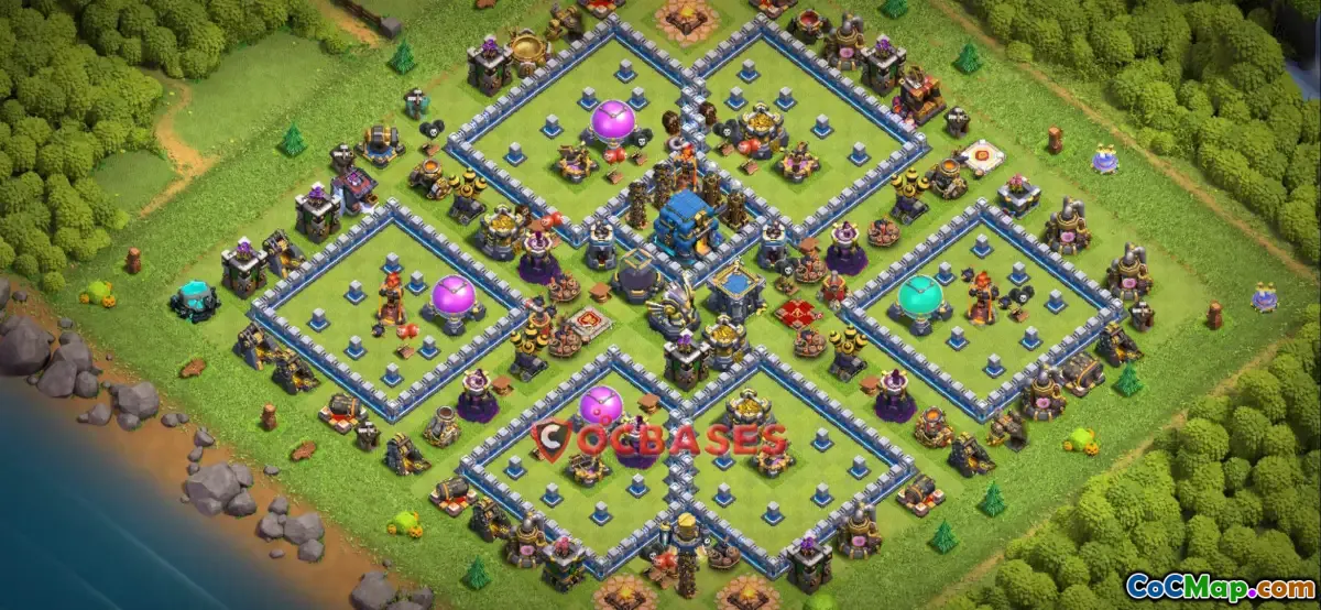 In Clash of Clans, town hall bases are crucial for the strategic success of players in both war and farming modes. A Town Hall 12 war base is specifically designed to defend against enemy attacks during clan wars. The layout of such a base typically prioritizes protecting the Town Hall itself while also ensuring that key defensive structures, such as Inferno Towers and Eagle Artillery, are adequately positioned to counter various attack strategies. Players often seek out effective base designs to improve their win rates in clan wars, making it essential to have a well-thought-out war base layout.