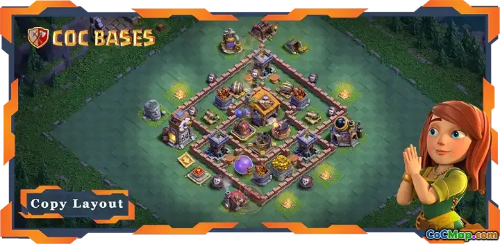 Dans l'ensemble, la conception de la base BH07 présente un agencement réfléchi de structures défensives et de stockage de ressources qui offre une approche équilibrée pour protéger les actifs cruciaux et se défendre contre les attaques. Chaque élément, du hall des constructeurs aux différentes défenses, joue un rôle central dans le maintien de l'intégrité de la base et l'amélioration de sa résilience pendant les batailles.