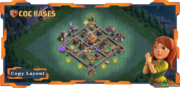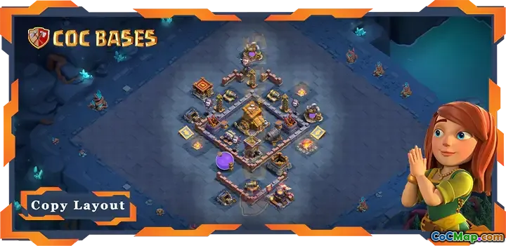 Dans l'ensemble, la conception de la base BH08 avec un hall de construction situé au centre démontre une stratégie de défense bien pensée. Avec des murs protégeant le centre et une variété de puissantes structures défensives réparties dans les sections environnantes, cet aménagement vise à créer un haut niveau de sécurité. Les joueurs peuvent tirer parti de cette conception pour maximiser leur potentiel défensif et protéger efficacement leurs ressources contre les empiétements ennemis.