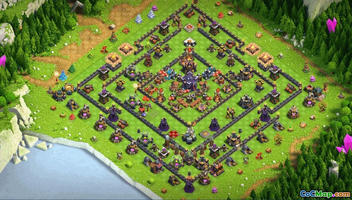 This copy-ready Town Hall 15 base layout bundle covers home village, trophy base, and war base designs, plus a CoC map with base layouts you can copy instantly through a dedicated link. The layout emphasizes a sturdy core around Town Hall 15, tight compartments, and layered defenses suitable for current meta.