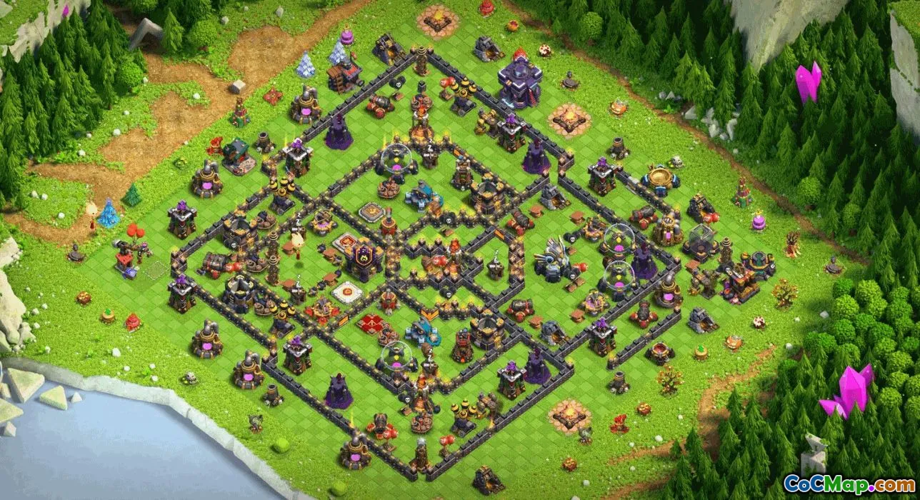 To use, open Clash of Clans, navigate to the base builder, and select Paste Layout using the provided link. Save and review traps and hole placements. This map also works as a solid map for general CoC map rotation and is suitable for future Town Hall upgrades.