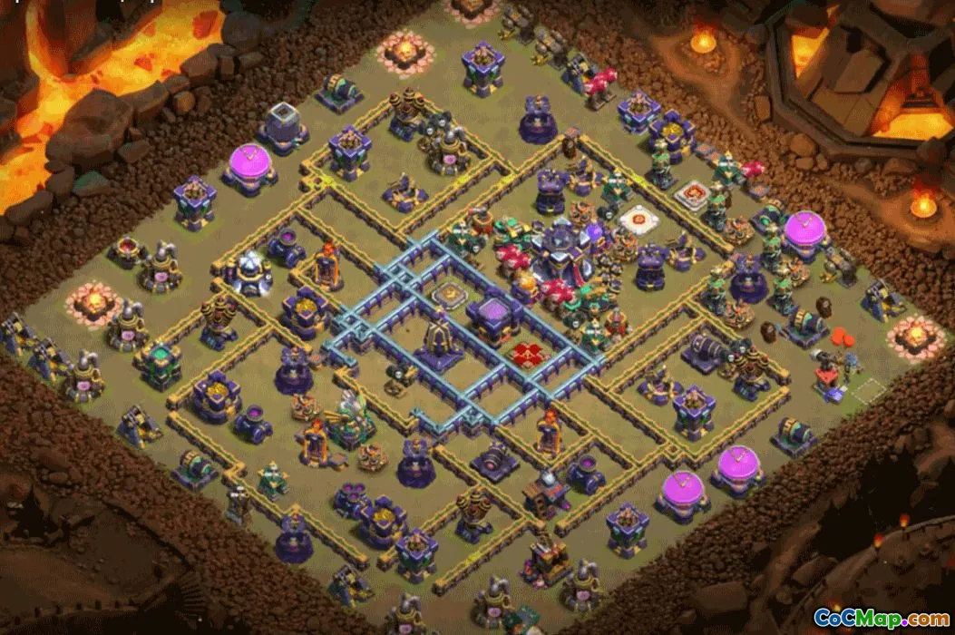The Home Village layout protects your Town Hall 15 while guarding storages. Expect tight compartments, well-placed air and ground defenses covering common entry routes, and deliberate trap zones that slow and redirect attackers. Clean funnels support your own spell combos and troops, reducing scouting time. Copy the TH15 Home Village now: Copy TH15 Home Village.