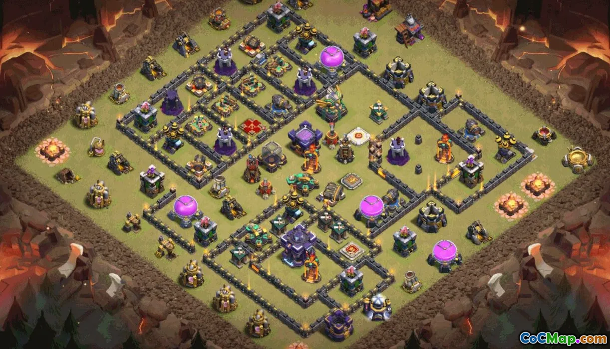 This copy-ready Town Hall 15 base layout is crafted for home village safety, trophy grinding, and clan wars. It features a centralized Town Hall 15 with layered defenses, well-protected resource storages, and smart compartment design to slow enemy troops. The map is balanced for both air and ground attacks, with traps and bombs placed to punish sneaky dives, while outer ring defenses redirect attackers toward kill zones that maximize damage in CoC battles.