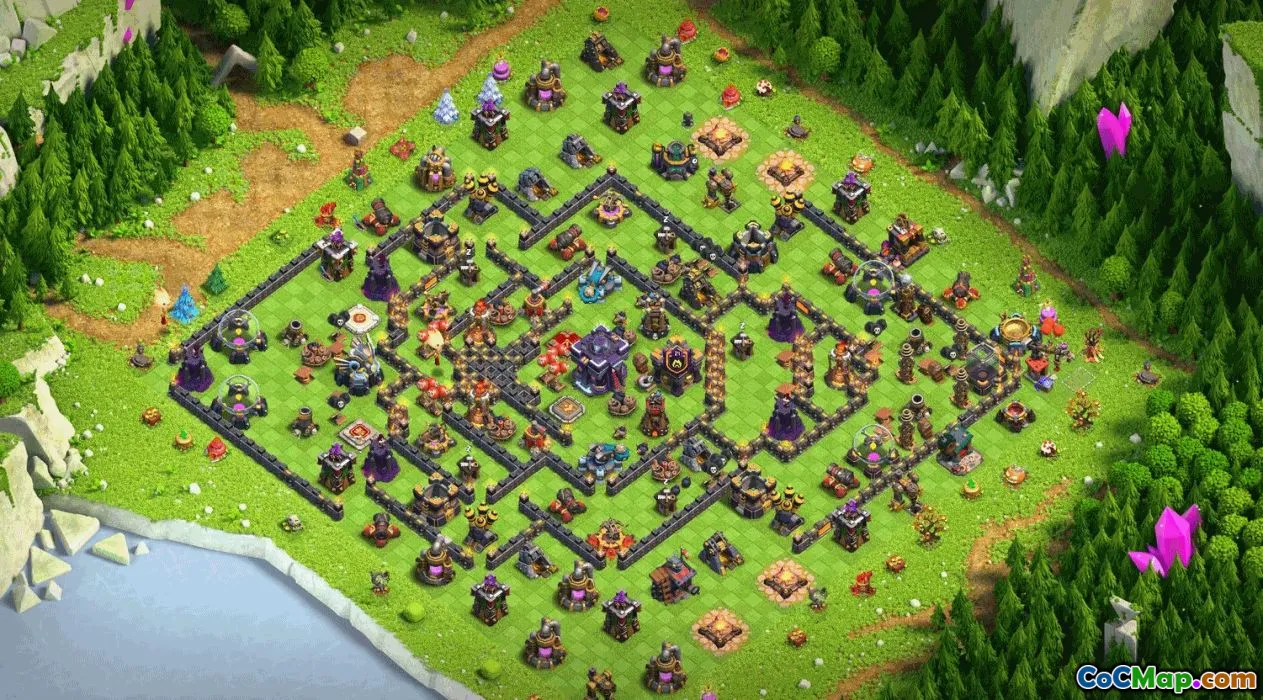 On the coc map it uses symmetric chambers and staggered traps to slow even high-level armies. For trophy maps, the outer ring creates time-wasting paths that separate heroes from the main force; for war maps, the core is guarded by a mix of splash and single-target defenses to survive siege pressure. The result is a versatile base that adapts across modes while keeping your Town Hall secure.