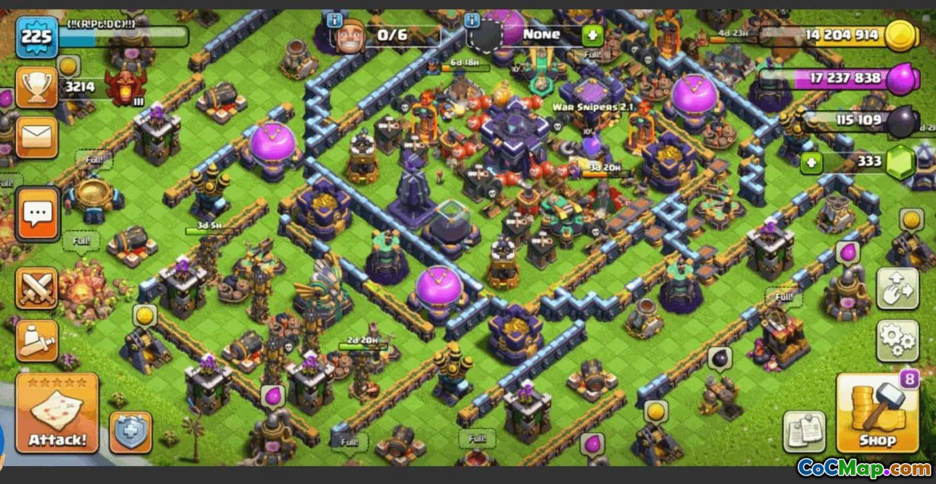 To deploy, open the base editor in Clash of Clans and import the copy-ready layout using the copy path. For war, adjust the core by rotating or swapping in your Clan Castle and heroes to strengthen the defense; for farming or trophy runs, tweak ring widths and trap timing to match your target. This map is mobile-friendly, map-ready for Town Hall 15 success, and suitable across home village, trophy, and war configurations.