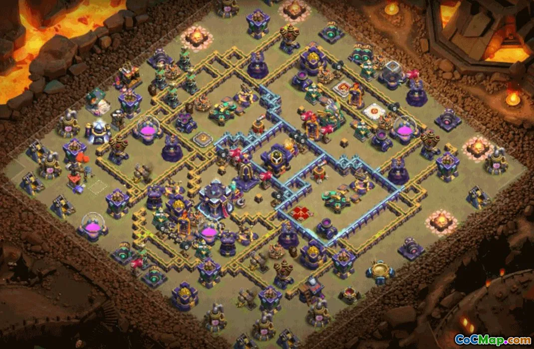TH15 base layout designed for direct copying into your home village, trophy base, and war setups. It places the Town Hall at the core within layered defenses, with centralized storages and smart compartmenting to slow sieges. The map is tuned for balanced protection against both air and ground attacks, while keeping loot routes efficient for steady farming and trophy gains.