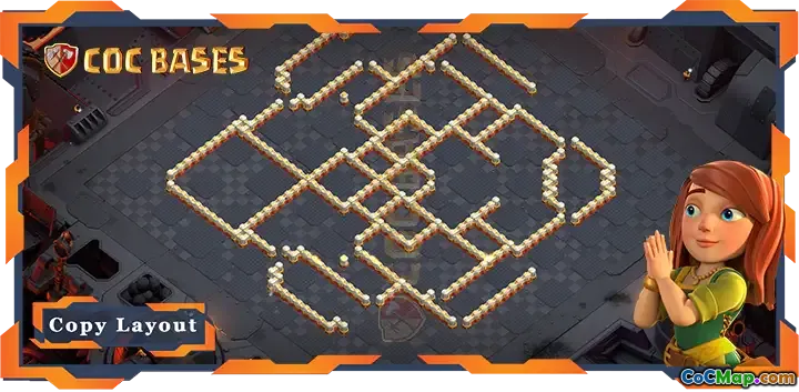 Les multiples sections extérieures de la configuration créent des couches de défense supplémentaires. Ces sections peuvent servir de pièges aux troupes d'invasion, les distrayant et les éloignant de l'Hôtel de Ville. En répartissant les défenses et en utilisant le terrain à bon escient, le village peut gérer efficacement les attaques sous différents angles, ce qui en fait une cible difficile pour les clans ennemis lors de guerres ou de matchs CWL.