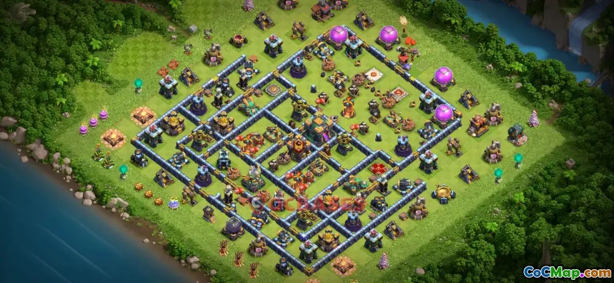 Equally important is the anti-ground defense capability of a Town Hall 14 trophy base. With attackers frequently using ground troops, including powerful armies that can overtake an unprepared base, it's necessary to place defensive buildings strategically. This includes configuring defenses like cannons, archer towers, and wizard towers to create crossfire zones that can deal with incoming ground units efficiently.