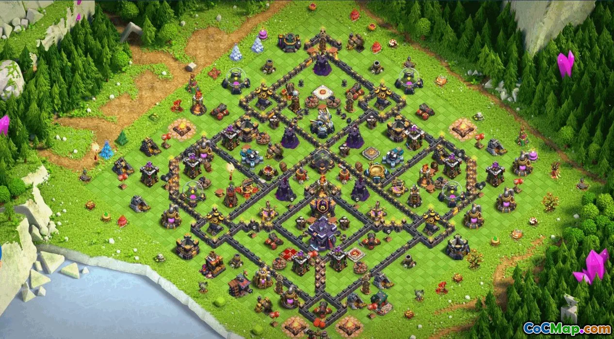 The map layout emphasizes a well-tuned coc map with shielded storages, trap placements, and smart defense spread to deter funneling and early confrontations. The home village variant protects resources while keeping a clear upgrade path, while the trophy base prioritizes defense uptime and funnel control to sustain high leaderboard scores. For war, the design integrates effective Clan War defenses and siege readiness, so your clan can counter diverse attack strategies.