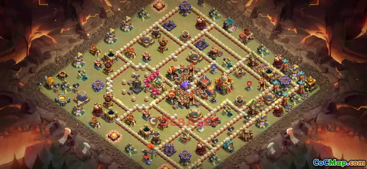 The Town Hall 16 war base in Clash of Clans is designed to provide strong defenses and strategic placement of buildings to protect your resources and defend against enemy attacks. This level introduces new defensive structures and upgrades, making the base more resilient. Players often focus on creating a balanced layout that combines well-placed traps, walls, and defensive buildings to maximize their protection during clan wars.