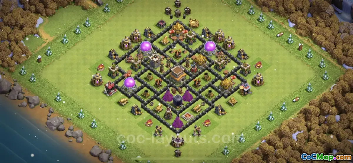 A well-structured anti-3 star base for TH8 typically includes strategic placement of defenses such as air sweepers, hidden Tesla, and inferno towers. The layout often emphasizes protecting critical structures, including the Town Hall and storages, by distributing defenses thoughtfully. Players can adopt various base designs that have proven successful in repelling attacks, thus providing a solid foundation for defense. Links to these base designs can be found online, allowing players to quickly copy effective formations that others have used successfully.