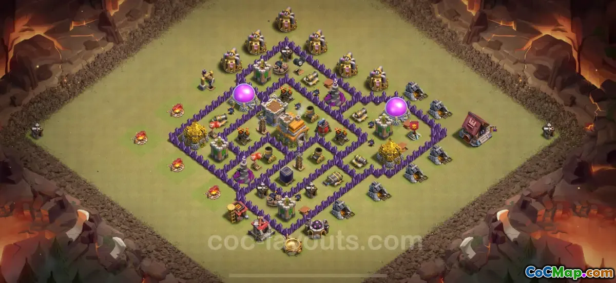 इसके अतिरिक्त, लेख विभिन्न आधार डिज़ाइनों के लिंक प्रदान करता है जिन्हें खिलाड़ी अपने उपयोग के लिए कॉपी या अनुकूलित कर सकते हैं। ये बेस लेआउट टाउन हॉल 7 के लिए तैयार किए गए हैं और विभिन्न संरचनाओं और रक्षात्मक संरचनाओं को उजागर करते हैं जो दुश्मन के हमलों के खिलाफ सुरक्षा को अधिकतम करते हैं। एक मजबूत सुरक्षा बनाने के लिए जाल, रक्षात्मक इमारतों और दीवारों की रणनीतिक नियुक्ति के महत्व को रेखांकित किया गया है।