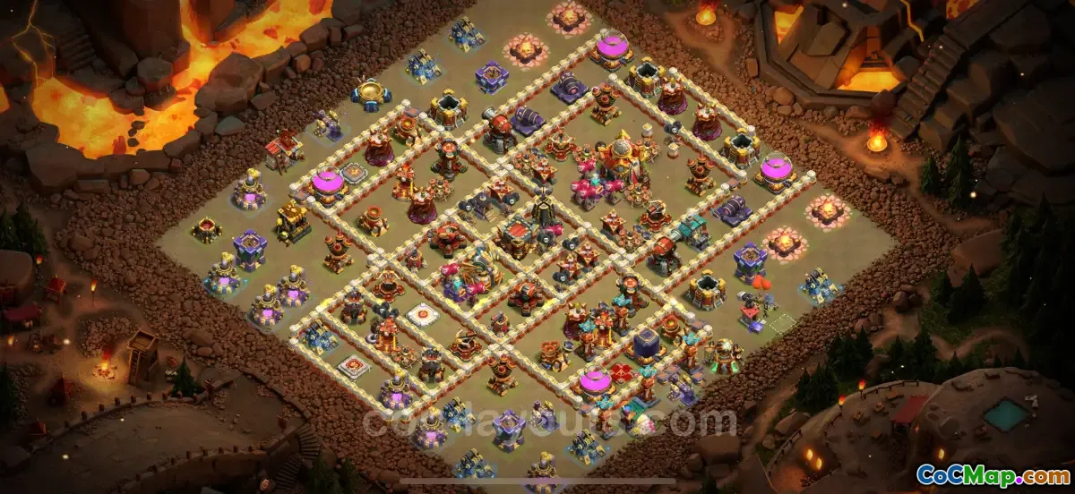 The Best War Base for Town Hall Level 16 has been designed to provide optimal defense against a variety of attack strategies in Clash of Clans. This base layout is specifically crafted to withstand assaults during Clan War Leagues, making it a valuable asset for players looking to fortify their defenses. It integrates various defensive structures strategically placed to cover multiple angles of attack, ensuring that any invading forces face significant challenges while attempting to breach the base.