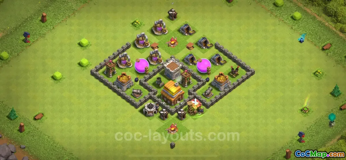 टॉप एंटी एवरीथिंग TH4 बेस एक अनुकूलित लेआउट है जो क्लैश ऑफ क्लैन्स के उन खिलाड़ियों के लिए डिज़ाइन किया गया है जो टाउन हॉल लेवल 4 पर अपनी रक्षात्मक क्षमताओं को बढ़ाना चाहते हैं। इस बेस डिज़ाइन में विभिन्न प्रकार के हमलों से बचाने के लिए इमारतों और सुरक्षा के रणनीतिक प्लेसमेंट को शामिल किया गया है। आक्रमण करता है, जो इसे विभिन्न स्थितियों में बहुमुखी और प्रभावी बनाता है। बेस लेआउट का परीक्षण किया गया है और इस टाउन हॉल रेंज में विरोधियों द्वारा उपयोग की जाने वाली सामान्य रणनीतियों के खिलाफ साबित हुआ है।