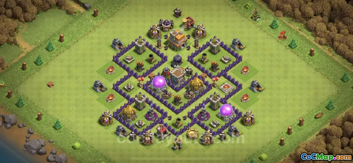 TH7 कृषि आधार में इमारतों और जालों की एक व्यापक व्यवस्था शामिल है जो हमलावरों के खिलाफ एक मजबूत रक्षा बनाने के लिए मिलकर काम करती है। यह डिज़ाइन टाउन हॉल लेवल 7 की सीमाओं और क्षमताओं को ध्यान में रखता है, यह सुनिश्चित करते हुए कि लेआउट विरोधियों द्वारा नियोजित सामान्य रणनीतियों का विरोध कर सकता है। भंडारण इकाइयों और रक्षात्मक संरचनाओं को सावधानीपूर्वक रखकर, आधार को संसाधन सुरक्षा के लिए अनुकूलित किया जाता है।