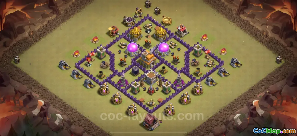 TH7 बेस का एक प्राथमिक लक्ष्य हर चीज का विरोधी होना है, जिसका अर्थ है कि इसका निर्माण जमीनी हमलों और हवाई हमलों सहित विभिन्न प्रकार के हमलों का विरोध करने के लिए किया गया है। रणनीतिक बिल्डिंग प्लेसमेंट का उपयोग करके, खिलाड़ी हमलावरों को टाउन हॉल और प्रमुख रक्षात्मक इमारतों जैसी महत्वपूर्ण संरचनाओं तक आसानी से रास्ता खोजने से रोक सकते हैं। हाइब्रिड लेआउट उन तत्वों को मिलाते हैं जो संसाधनों और टाउन हॉल की रक्षा करते हैं, जिससे विरोधियों के लिए तीन सितारा जीत हासिल करना चुनौतीपूर्ण हो जाता है।
