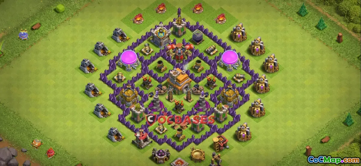 Additionally, a Town Hall 7 farming base also includes features to counterground troops effectively. Defenses such as cannons, archer towers, and mortars are crucial for targeting ground units, preventing them from easily accessing and looting resources. By configuring defenses to create a balanced approach to both ground and air attacks, players can enhance their base's overall security.