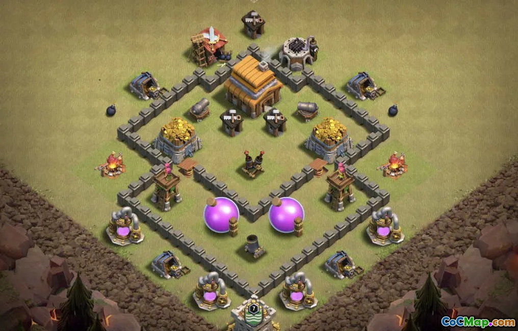 Explore top Clash of Clans Town Hall 4 base layouts: war, farming, trophy, home village, and more. Download and customize your ideal coc map now!