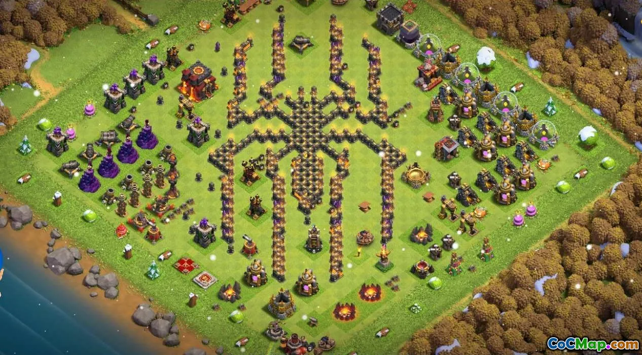 The base layout for Clash of Clans Town Hall 10 offers players a strategic design to defend their resources and progress effectively. This layout often includes well-placed defenses such as cannons, archer towers, and wizard towers to cover all angles against attackers. The positioning of the Town Hall within the center of the base helps protect it from being easily looted while making it a difficult target for enemies to reach.