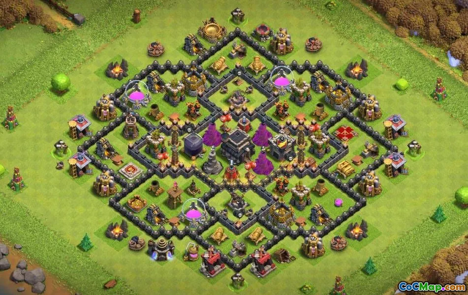 क्लैश ऑफ क्लैन समुदाय टाउन हॉल 9 के लिए विभिन्न लेआउट प्रदान करता है, प्रत्येक विभिन्न रणनीतिक उद्देश्यों के लिए डिज़ाइन किया गया है। इन लेआउट में होम गांव की व्यवस्था, प्रतिस्पर्धी लड़ाई के लिए युद्ध के आधार, ट्रॉफी के ठिकानें शामिल हैं जो एक उच्च ट्रॉफी की गिनती, हाइब्रिड आधारों को बनाए रखने पर ध्यान केंद्रित करते हैं जो खेती और रक्षा को संतुलित करते हैं, और संसाधन संग्रह के उद्देश्य से खेती के ठिकानों को बनाए रखते हैं। प्रत्येक बेस लेआउट एक अद्वितीय कार्य करता है, खेल के उपयोगकर्ताओं के विविध खेल शैलियों के लिए खानपान।