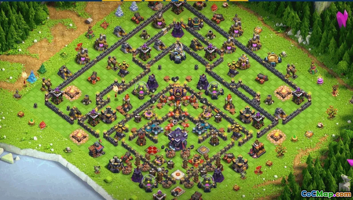 Town Hall 15 base layouts provide a unified package for home village, trophy pushing, and war maps. The copyable design centers the Town Hall and builds multiple defensive layers around it, with air defenses, traps, and hero positions tuned for strong funneling. The layout preserves storage protection while keeping critical targets reachable for shielded troops, and it maps cleanly on the CoC map to resist both air and ground assaults. This setup suits competitive play and clan wars.