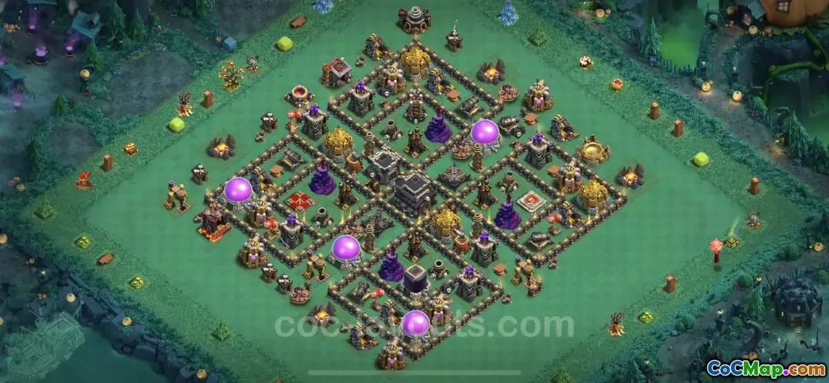 A TH9 farming base typically includes layouts that strategically position resources such as gold mines, elixir storages, and dark elixir storages. By placing these resources within the core of the base, players can make it more challenging for attackers to reach them. A well-designed TH9 base will also utilize walls effectively, channeling enemy troops into traps and defensive structures while minimizing their access to the core resources.