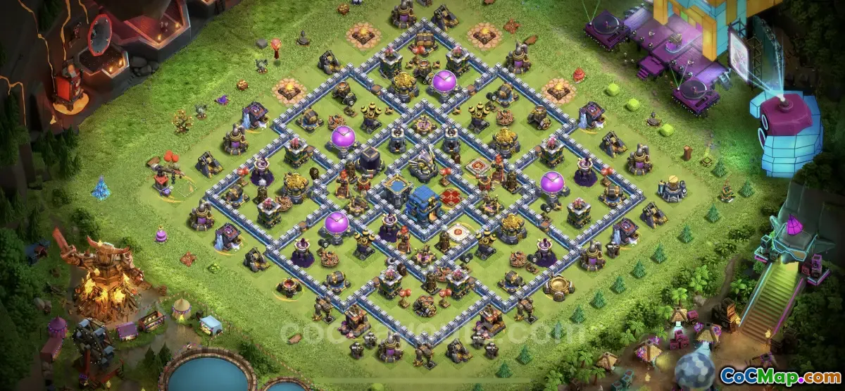 The Farming Base TH12 is specifically designed for players in Clash of Clans at Town Hall Level 12, aiming to protect resources effectively. This base layout focuses on creating a structure that minimizes the chances of opponents achieving two stars when attacking. With meticulous planning and strategic placement of defenses, this base supports resource defense, ensuring that valuable materials remain secure from enemy raids.