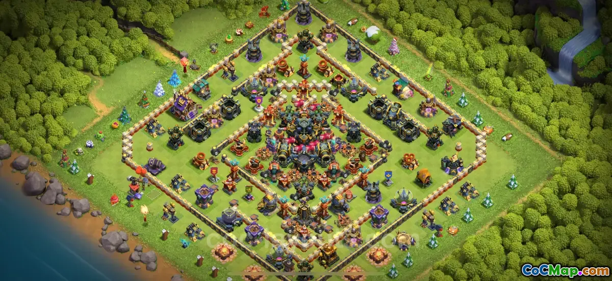 क्लैश ऑफ क्लैन्स में ट्रॉफी इकट्ठा करने के लिए TH17 बेस डिज़ाइन विशेष रूप से टाउन हॉल स्तर 17 के खिलाड़ियों के लिए तैयार किए गए एक रणनीतिक लेआउट को प्रदर्शित करता है। यह डिज़ाइन यह सुनिश्चित करते हुए रक्षात्मक क्षमताओं को अधिकतम करने पर केंद्रित है कि ट्रॉफियां लगातार एकत्र की जा सकती हैं। इस स्तर पर खिलाड़ी ट्रॉफी रैंकिंग में प्रतिस्पर्धात्मक बढ़त बनाए रखने के साथ-साथ अपने संसाधनों और सुरक्षा की रक्षा के लिए अनुकूलित तरीकों की तलाश कर रहे हैं। लेआउट खेल में आम तौर पर इस्तेमाल की जाने वाली विभिन्न हमलावर रणनीतियों के खिलाफ रक्षा के लिए एक मजबूत आधार के रूप में कार्य करता है।