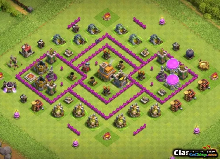 खेती के ठिकानों को संसाधनों की रक्षा के लिए डिज़ाइन किया गया है और अक्सर रक्षात्मक इमारतों से घिरे गांव के मूल में भंडारण के साथ संरचित किया जाता है। दूसरी ओर, ट्रॉफी के आधार, टाउन हॉल की रक्षा करने और यह सुनिश्चित करने पर ध्यान केंद्रित करते हैं कि खिलाड़ी प्रभावी रक्षा के माध्यम से ट्राफियां बरकरार रखता है। हाइब्रिड बेस का उद्देश्य संसाधन प्रतिधारण और ट्रॉफी संरक्षण के बीच एक संतुलन प्राप्त करना है, जो एक बहुमुखी लेआउट की पेशकश करता है जो खेल में विभिन्न चुनौतियों के अनुकूल हो सकता है। प्रत्येक आधार लेआउट को टाउन हॉल 7 में सामना किए गए सबसे आम हमले की रणनीतियों के खिलाफ सबसे अच्छा बचाव प्रदान करने के लिए क्यूरेट किया गया है।