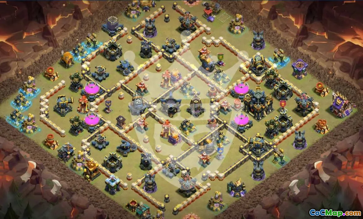 Looking for a strong and strategic base layout for Clash of Clans Town Hall 17? This layout offers excellent protection for your resources and Clan War defenses, optimized for both trophy pushing and defensive stability. Designed with a balanced placement of walls, traps, and Inferno Towers, it helps detract attackers and shield vital assets effectively.