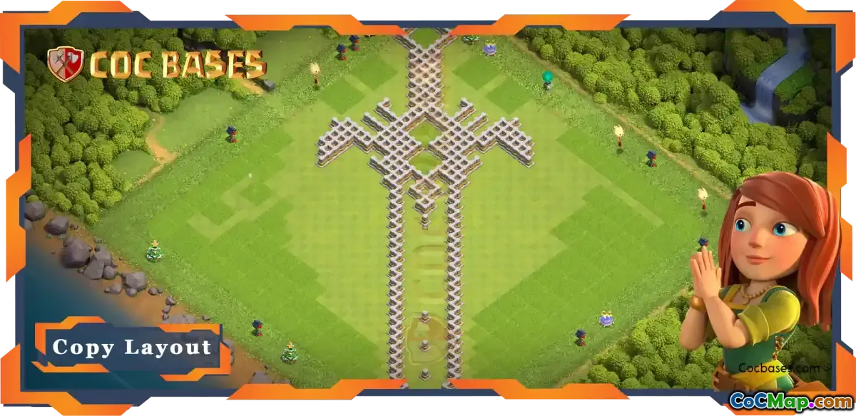 Discover a hilarious Troll Base TH11 design in Clash of Clans, featuring a giant sword and unique layout. Check out the funny design and link now!