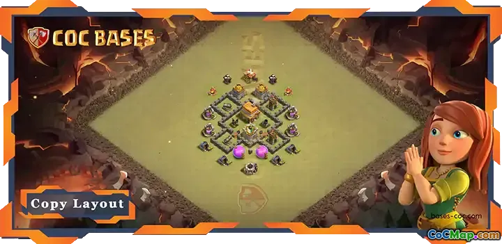 यह TH4 बेस लेआउट उन खिलाड़ियों के लिए डिज़ाइन किया गया है जो युद्ध और कबीले युद्ध लीग (सीडब्ल्यूएल) जैसी घटनाओं में रक्षा पर केंद्रित हैं। एक मजबूत रक्षात्मक स्थिति बनाने के लिए संरचनाओं की स्थिति रणनीतिक है। केंद्रीय खंड आधार के हृदय के रूप में कार्य करता है, जहां प्रमुख संसाधनों और उद्देश्यों की सुरक्षा के लिए महत्वपूर्ण इमारतें स्थित हैं।