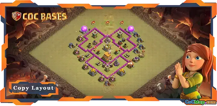 Discover the ultimate TH6 war base layout designed to counter all attack strategies in Clash of Clans. This layout strategically places defenses, traps, and Clan Castle to maximize damage and weaken enemy attacks. The base’s structure emphasizes balanced protection for resources and key defenses, making it difficult for opponents to break through.