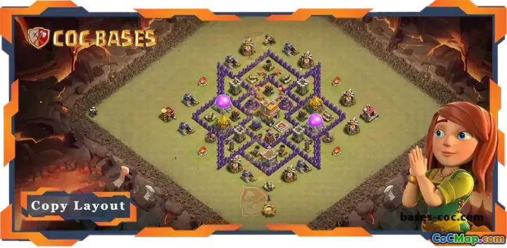 Additionally, the layout provides robust protection against 3-star raids by fortifying key structures behind walls and utilizing efficient defenses. Ideal for War Clan Wars League (WCL) scenarios, this layout ensures strong defense and survivability, helping you win more battles and climb the ranks in Clash of Clans. You can access the complete base design through the provided link, allowing easy implementation and customization for your clan's needs.