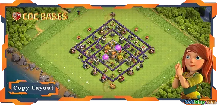 Designed with an anti-everything approach, this layout effectively counters various attack methods, including Giants, Hog Riders, and air assaults. Its compact structure and strategic trap placement enhance survivability, making it a reliable choice for TH7 players seeking to defend resources and climb the troop ranks efficiently. Use the provided link to access the full layout and implement it in your gameplay for optimal results.