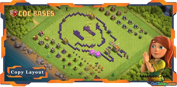 Designed with a focus on humor and strategy, this layout serves as a great template for players wanting to showcase creativity while safeguarding their resources. The layout is optimized to maximize defense and keep attackers guessing, ensuring your base remains resilient against common attack strategies at TH7. Although it’s centered on a fun approach, it maintains practical defensive features to keep your base secure.