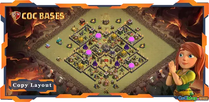 यह विशेष युद्ध अड्डा टाउन हॉल स्तर 9 के लिए डिज़ाइन किया गया है, जिसे विशेष रूप से कबीले युद्ध लीग (सीडब्ल्यूएल) सहित युद्ध परिदृश्यों में हमलों से बचाव के लिए तैयार किया गया है। इसमें एक संरचना है जिसे एंटी 2 स्टार्स लेआउट के रूप में जाना जाता है, जिसका उद्देश्य किसी हमले के दौरान विरोधियों द्वारा एकाधिक स्टार प्राप्त करने की संभावना को कम करना है। प्रमुख संसाधनों और रक्षा संरचनाओं को रणनीतिक रूप से रखकर, यह आधार विरोधियों द्वारा इस्तेमाल की जाने वाली विभिन्न हमले की रणनीतियों से प्रभावी ढंग से रक्षा करता है।