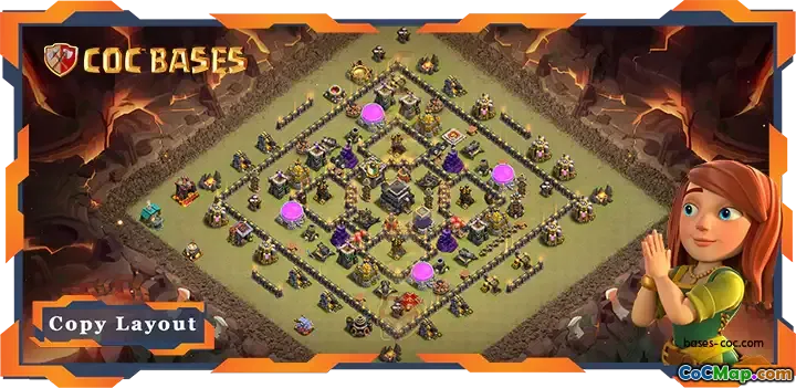 मुख्य संरचनाओं के चारों ओर सोच-समझकर व्यवस्थित की गई दीवारों की विशेषता वाला यह हाइब्रिड लेआउट, कई खंडों में योजनाबद्ध है, जो एक स्तरित सुरक्षा की अनुमति देता है। प्रत्येक अनुभाग आधार के समग्र डिज़ाइन में जटिलता जोड़ते हुए कई उद्देश्यों को पूरा करता है। लेआउट को विभाजित करके, हमलावरों को कई रक्षात्मक बाधाओं के माध्यम से नेविगेट करने के लिए मजबूर किया जाता है, जिससे इस TH9 युद्ध अड्डे के खिलाफ एक सफल हमले की रणनीति को निष्पादित करना चुनौतीपूर्ण हो जाता है।