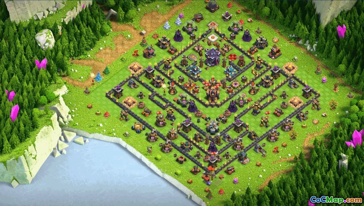 This Town Hall 15 base is a copy-ready design ideal for home village, trophy pushes, and war layouts. The core centers on the Town Hall and Eagle Artillery, protected by a multi-layer wall pattern and evenly spaced defenses. The layout uses tight compartments to slow charged attacks, smart trap placement, and outer ring storages to deter early raiding, while a clear funnel guides enemies toward kill zones for efficient defense.