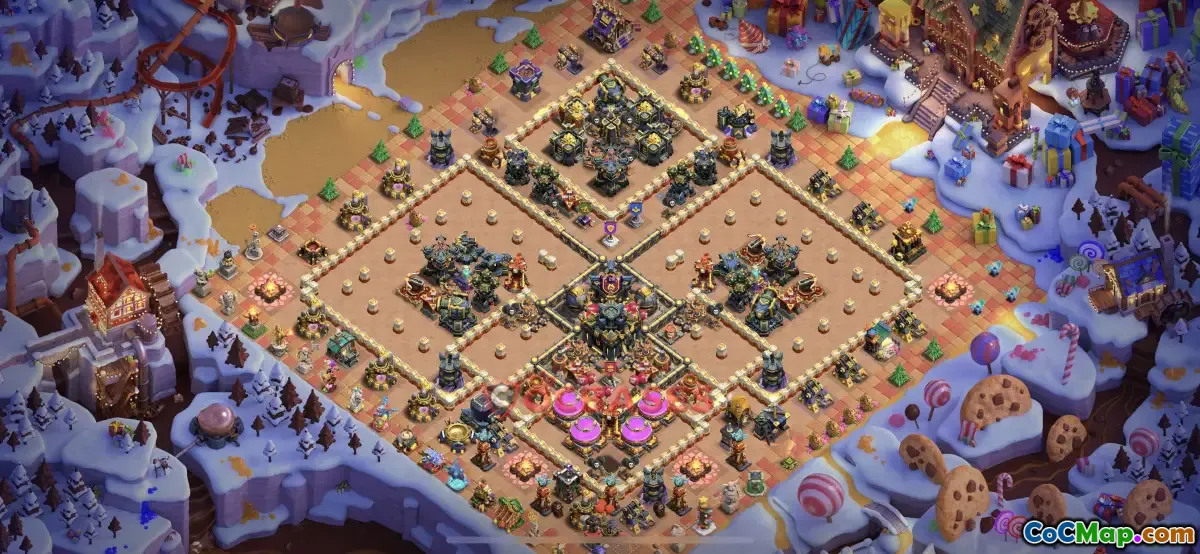 The Town Hall 17 trophy base for Clash of Clans is a strategic design created to protect your trophies and defend against attackers. It is specifically tailored to withstand attacks from higher-level players and maximize your chances of losing fewer trophies if you are attacked. Such bases often feature well-placed defenses, traps, and walls to disorient and slow down opponents, making it difficult for them to reach the core and achieve significant damage.