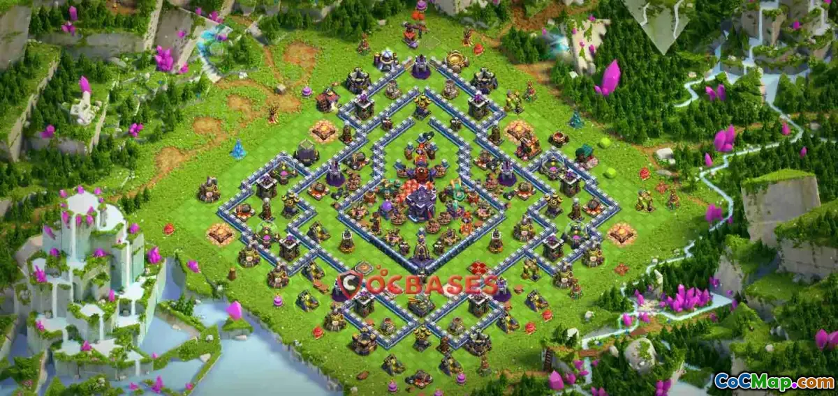 The Town Hall 15 trophy base is designed to provide maximum defense against various attack strategies in Clash of Clans. This base layout is particularly effective at preventing opponents from achieving three-star victories, as it incorporates features that counter ground and air attacks. By focusing on anti-air and anti-ground defenses, this layout addresses the common threats posed by units like Electro Dragons, Yeti, Dragons, Valkyries, and Balloons. Players looking for a robust defensive strategy will find this design particularly appealing.