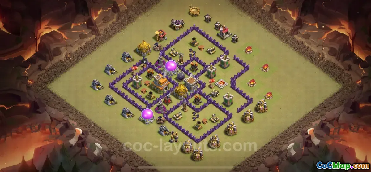 Basis TH7 terbaik memiliki ciri khas dari kemampuannya dalam menggagalkan serangan dari berbagai strategi yang biasa digunakan lawan. Pangkalan ini biasanya menggabungkan perpaduan struktur pertahanan, seperti menara pemanah, meriam, dan menara penyihir, yang ditempatkan secara strategis untuk mencakup area luas dan melindungi sumber daya penting. Dengan memahami pola serangan yang digunakan pemain, perancang pangkalan telah membuat tata letak yang dapat secara efektif melawan manuver ini, sehingga menyulitkan penyerang untuk mendapatkan tiga bintang.