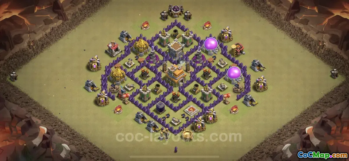 Salah satu fitur penting dari pangkalan perang TH7 yang sukses adalah penggabungan strategi "Anti Segalanya". Ini berarti bahwa pangkalan tersebut dibangun untuk melawan beberapa komposisi pasukan musuh, memastikan tidak ada strategi tunggal yang dapat menjamin keberhasilan. Desainnya biasanya mencakup penyimpanan terpusat dan balai kota yang mencegah penyerang mencapai titik-titik penting di pangkalan dengan mudah. Selain itu, distribusi jebakan, seperti bom dan pegas, juga penting untuk mengganggu rencana penyerang dan memaksa mereka melakukan tindakan yang tidak menguntungkan.