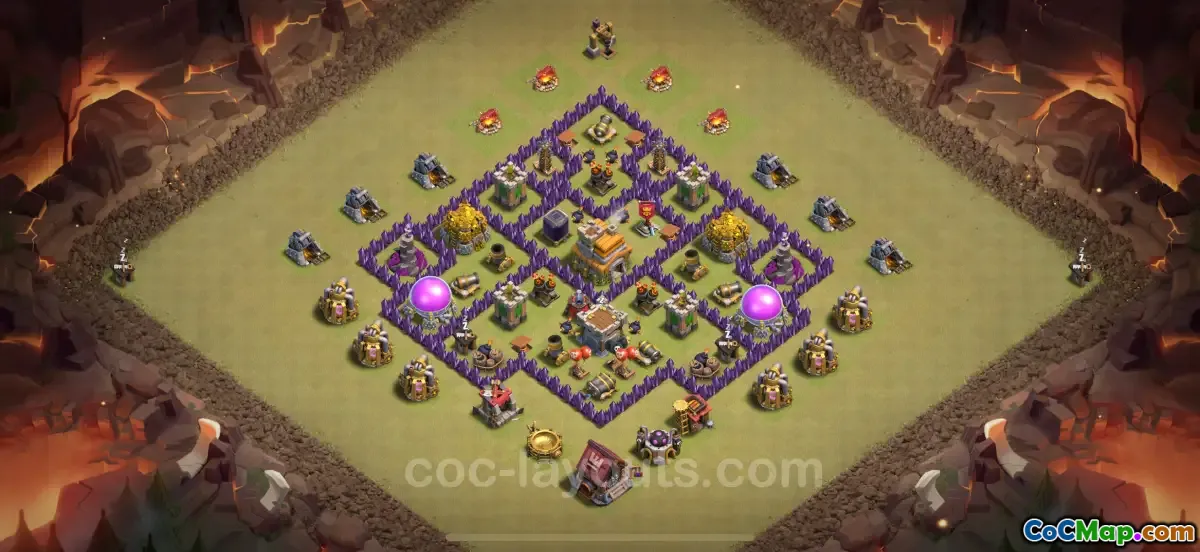 Salah satu karakteristik utama basis TH7 anti-bintang tiga terbaik adalah desainnya yang seimbang. Hal ini melibatkan penempatan struktur pertahanan, jebakan, dan penyimpanan secara strategis untuk menciptakan tata letak yang sulit dinavigasi oleh penyerang. Idenya adalah untuk menciptakan kompartemen di dalam pangkalan yang memaksa lawan menerobos beberapa lapisan pertahanan, sehingga menciptakan peluang bagi tindakan pertahanan untuk diterapkan pada berbagai tahap serangan.