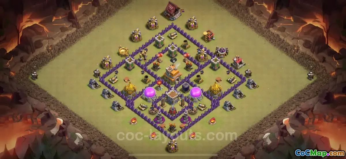 Dalam Clash of Clans, pemain terus-menerus mencari desain markas efektif yang dapat menggagalkan serangan musuh dan mengamankan kemenangan bintang dalam perang. Fokus pada pangkalan Balai Kota 7 (TH7) sangatlah penting, karena level ini menghadirkan tantangan unik berkat diperkenalkannya pasukan dan strategi yang lebih kuat. Rencana pangkalan yang ditampilkan bertujuan untuk menawarkan pertahanan optimal terhadap pasukan darat dan udara, terutama naga, yang biasa digunakan dalam serangan pada tingkat ini.