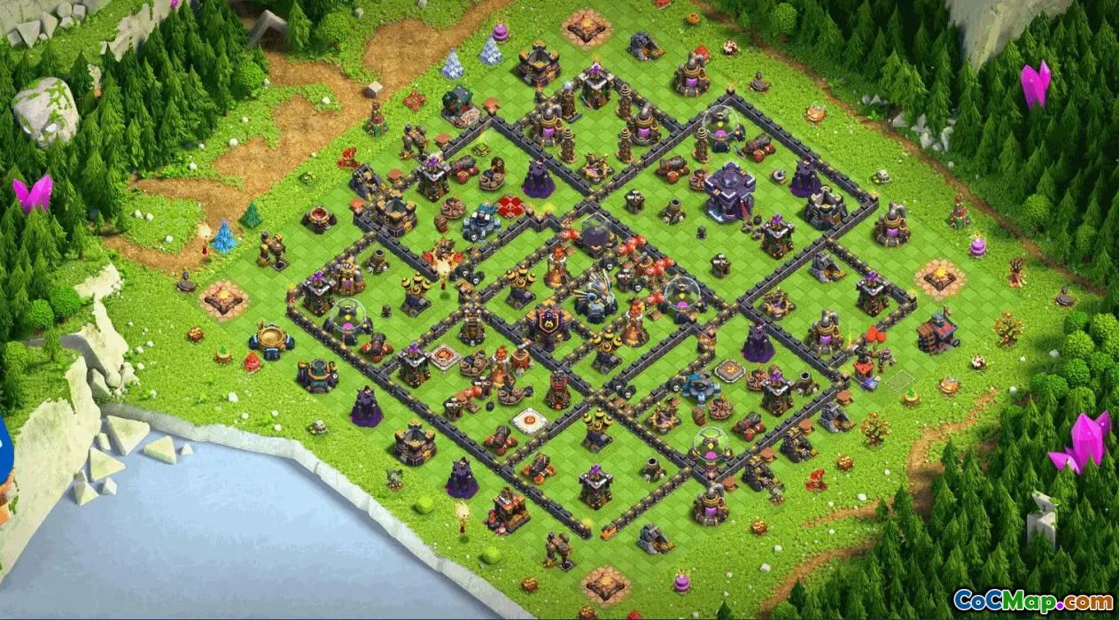 The base layout for Clash of Clans Town Hall 15 offers players an optimized design to defend their resources, troops, and trophies effectively. It incorporates strategic placement of key defenses such as cannons, archer towers, and air defenses to create a balanced and resilient perimeter. With a focus on protecting the core of the village, this layout aims to minimize damage from both offensive attacks and raids, making it a popular choice among players seeking to enhance their defense system.