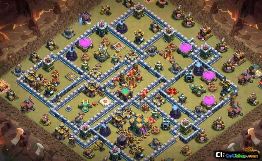 Dalam Clash of Clans, pemain di Balai Kota 14 memiliki akses ke berbagai tata letak dasar yang meningkatkan strategi pertahanan mereka dan mengoptimalkan manajemen sumber daya. Pemain sering mencari desain desa rumah yang efisien yang melindungi struktur kunci dan sumber daya dari serangan musuh, sementara juga memastikan bahwa kemampuan ofensif mereka sendiri dimaksimalkan. Tata letak ini sangat penting, karena mereka menentukan seberapa baik seorang pemain dapat bertahan melawan pemain lain selama penggerebekan, terutama dalam gameplay kompetitif. Untuk Balai Kota 14, pemain didorong untuk bereksperimen dengan formasi yang berbeda untuk menemukan tata letak yang selaras dengan gaya bermain mereka.