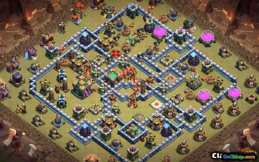 Game Clash of Clans menampilkan berbagai tata letak dasar yang dirancang untuk meningkatkan kemampuan strategis pemain, terutama untuk Balai Kota 14. Ketika para pemain berkembang melalui permainan, pangkalan mereka menjadi semakin penting untuk mempertahankan serangan musuh dan untuk mencapai kesuksesan dalam skenario perang. Tata letak yang tepat dapat melindungi sumber daya dan melindungi balai kota, yang sangat penting untuk keseluruhan gameplay. Pemain sering mencari desain terbaik untuk mengoptimalkan pertahanan mereka dan memastikan desa asal mereka dapat menahan berbagai jenis serangan.
